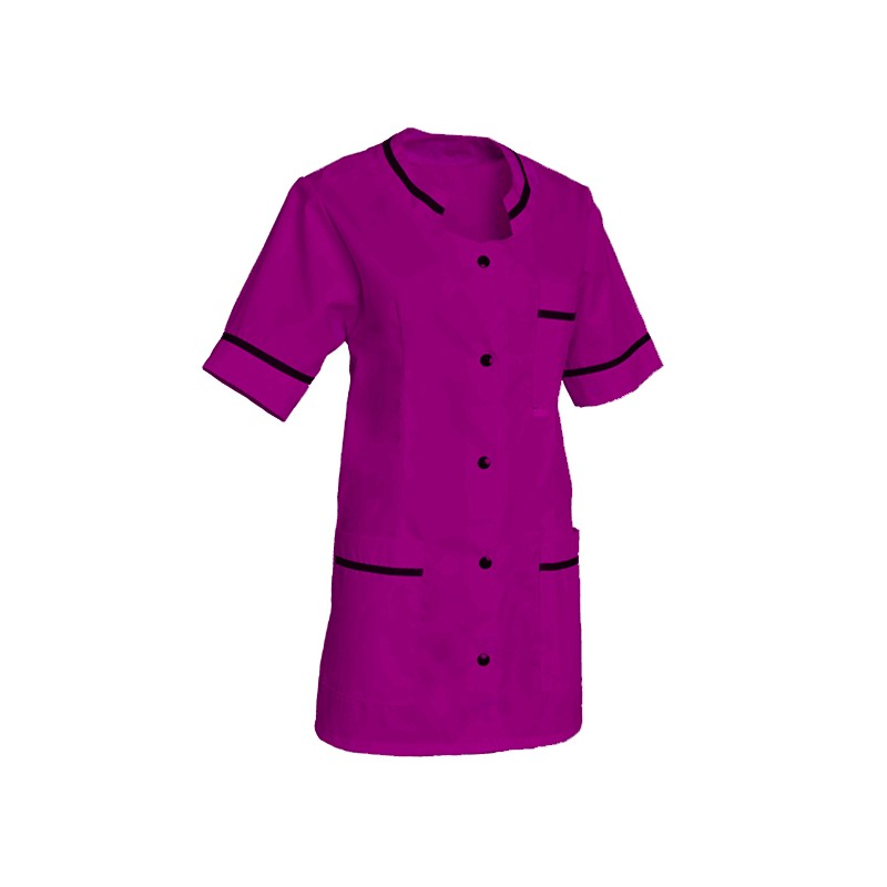 Blouse femme manches courtes. 3 poches. Col officier. Fermeture Boutons pressions