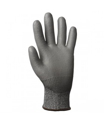 Tricot sans couture en HPPE + fibres minérales + Nylon + Spandex gris chiné de jauge 13. Enduction de la paume en polyuréthane gris. Haut niveau de protection contre les coupures Excellente résistance à l’abrasion et à la déchirure : durée de vie prolongée. Confort et dextérité optimum. Poignet élastiqué pour une meilleure protection contre les salissures. Couleurs peu salissantes. Idéal pour des manipulations de pièces coupantes en milieu sec ou légèrement huileux. Garanti sans silicone.